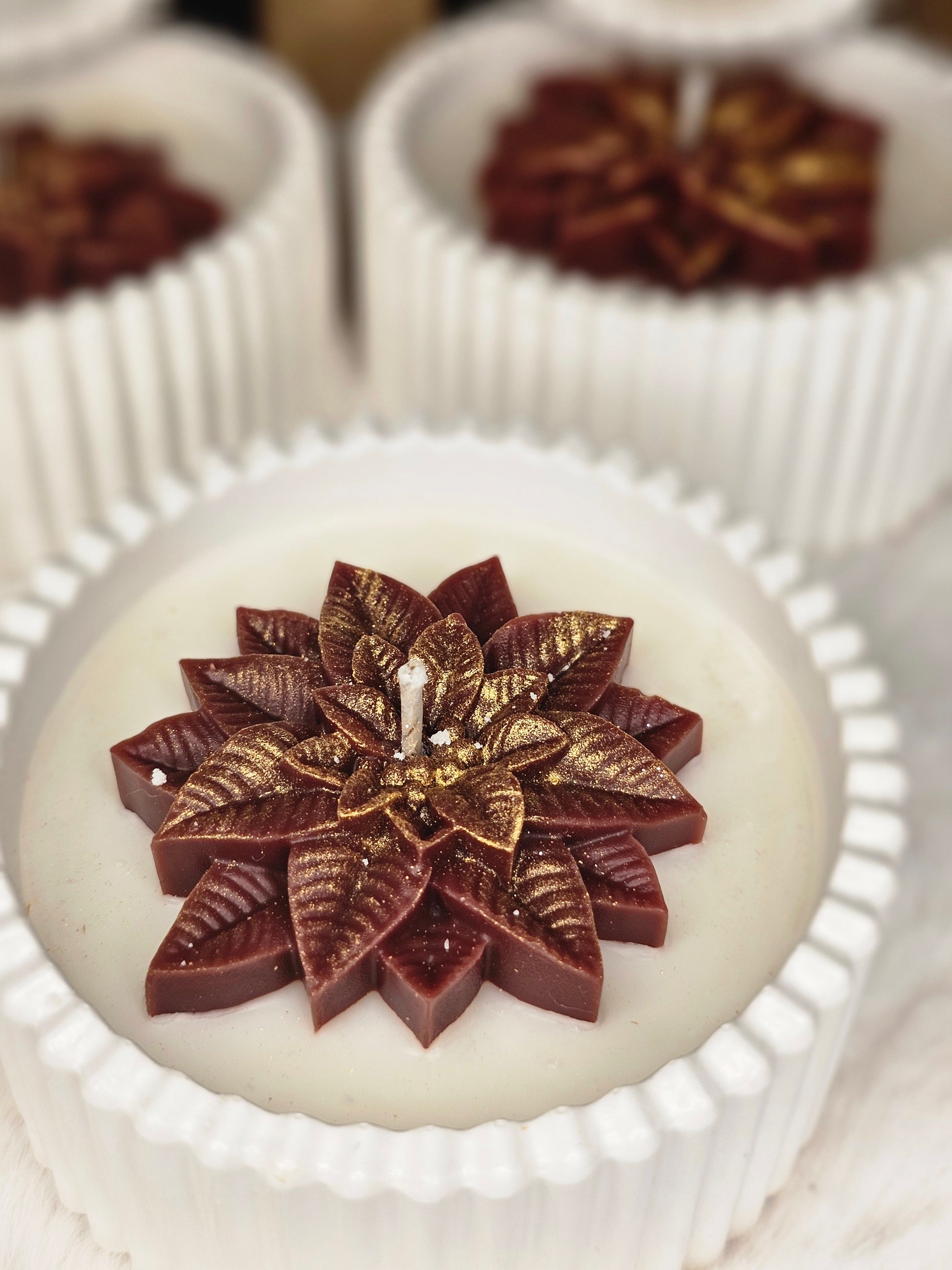 Christmas candle with burgundy flowers